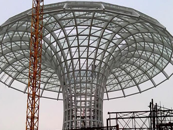 二、球形网架结构因其结构新颖,受力合理,自重轻、用钢量低等优点。如大型体育场馆球形泰兴螺栓球网架、公共场馆球形网架、电厂泰兴螺栓球网架、水泥工业球形网架、仓储物流球形网架、泰兴干煤棚工业球形网架、泰兴收费站泰兴加油站球形网架、展览中心、影剧院、商场、航站楼、候车厅、工厂泰兴车间、仓库、电视塔等球形螺栓球节点网架。国内球形网架结构主要分为:泰兴焊接球节点网架及螺栓球节点网架两种。螺栓球节点网架其构件工厂内加工量较大,现场安装便捷,适用于现场工期紧,泰兴施工条件、用电量受制约,网架形状复杂、泰兴杆件定位困难的异形结构。螺栓球节点球形网架系统基本由泰兴杆件、螺栓球、支撑支座等组成。按照节点形式可分为交叉泰兴桁架体系、四角锥体系、三角锥体系等。支撑方式多为固定支座支撑。对于大面积、大跨度及有特殊受力或伸缩要求的网架结构可采用橡胶支座、滑移支座、球铰支座等支撑形式,以满足结构自身的受力稳定、均衡,便于内力释放等设计要求。